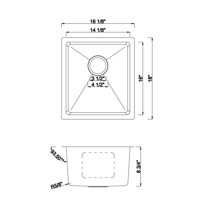 18″ Square Undermount Stainless Steel Single Bowl Kitchen Sink