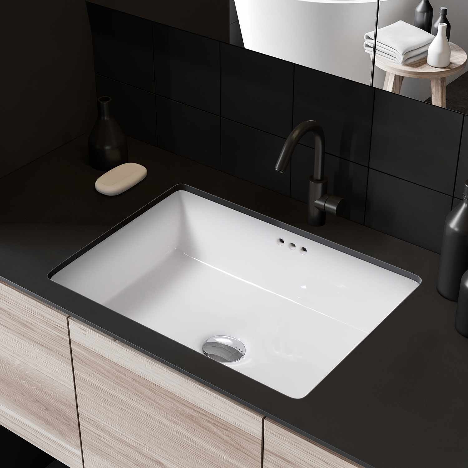 Home Bath Sinks 17″ x 13″ Rectangular Undermount Ceramic Bathroom Sink with Overflow Drain – LVU1713