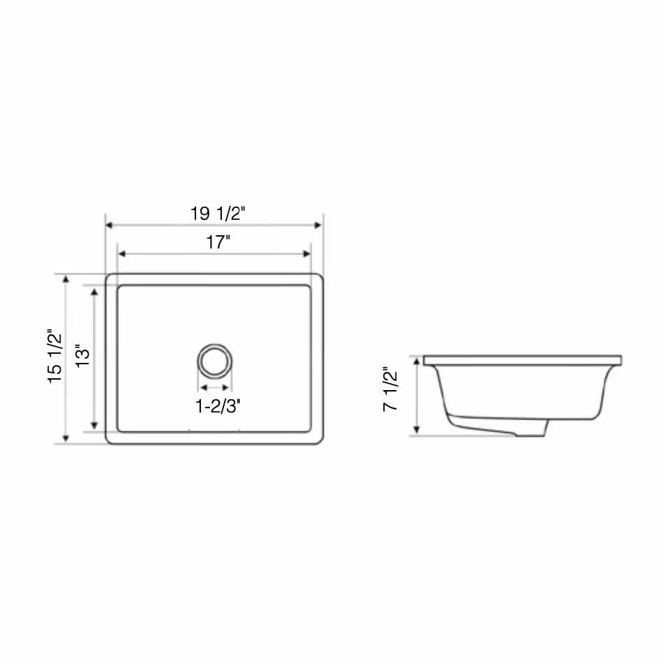 17″ x 13″ Rectangular Undermount Ceramic Bathroom Sink with Overflow Drain – LVU1713