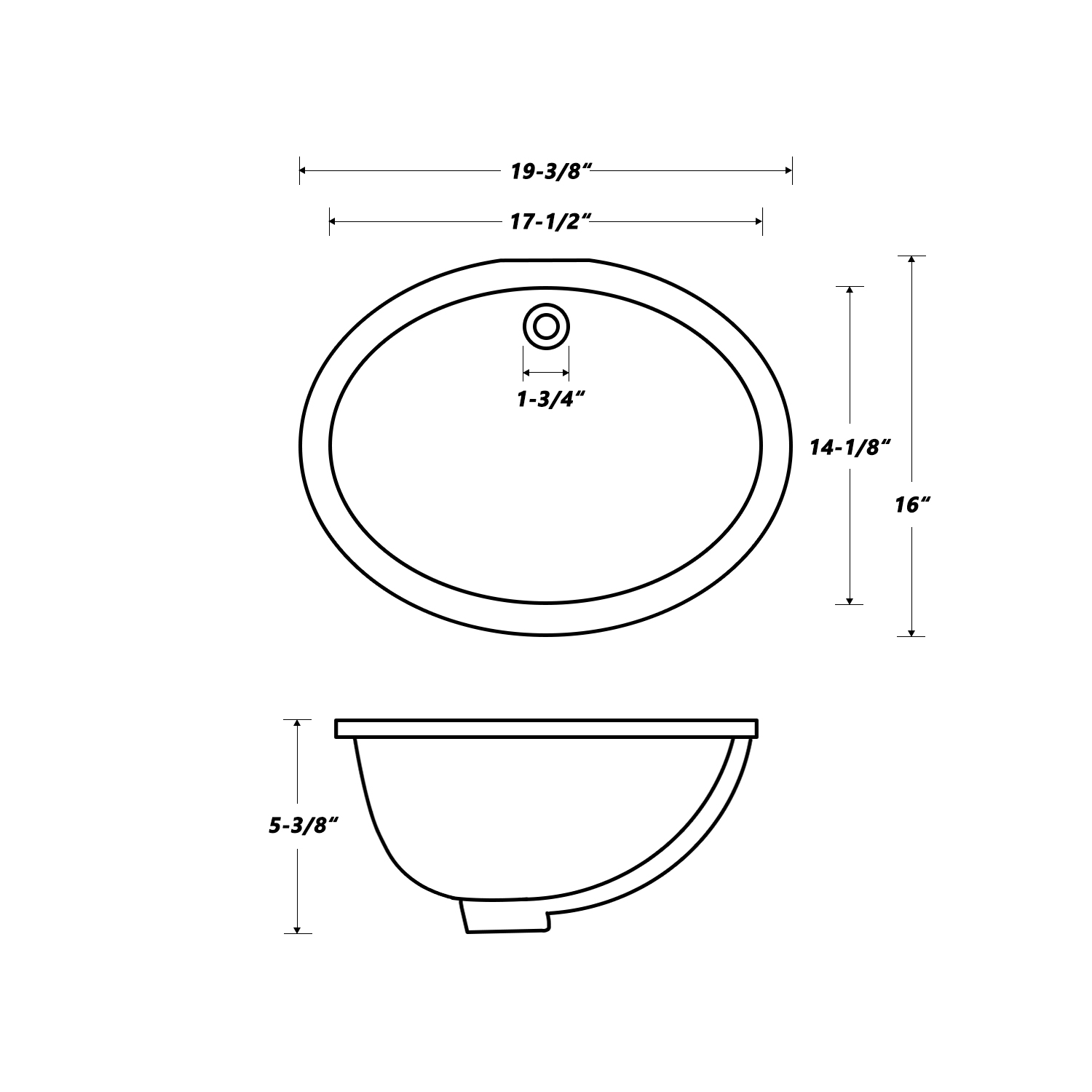 Overall Size: 19-3/8″ x 16″, Bowl Size: 17-1/2″ x 14-1/8″, Depth: 5-3/8″