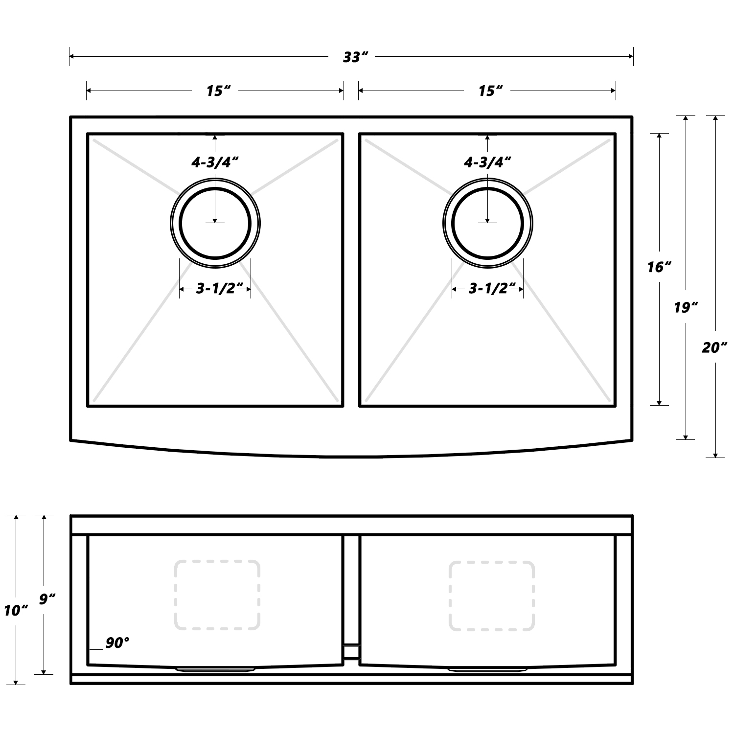 Overall Size: 33″ x 20″, Bowl Size: 15″ x 16″