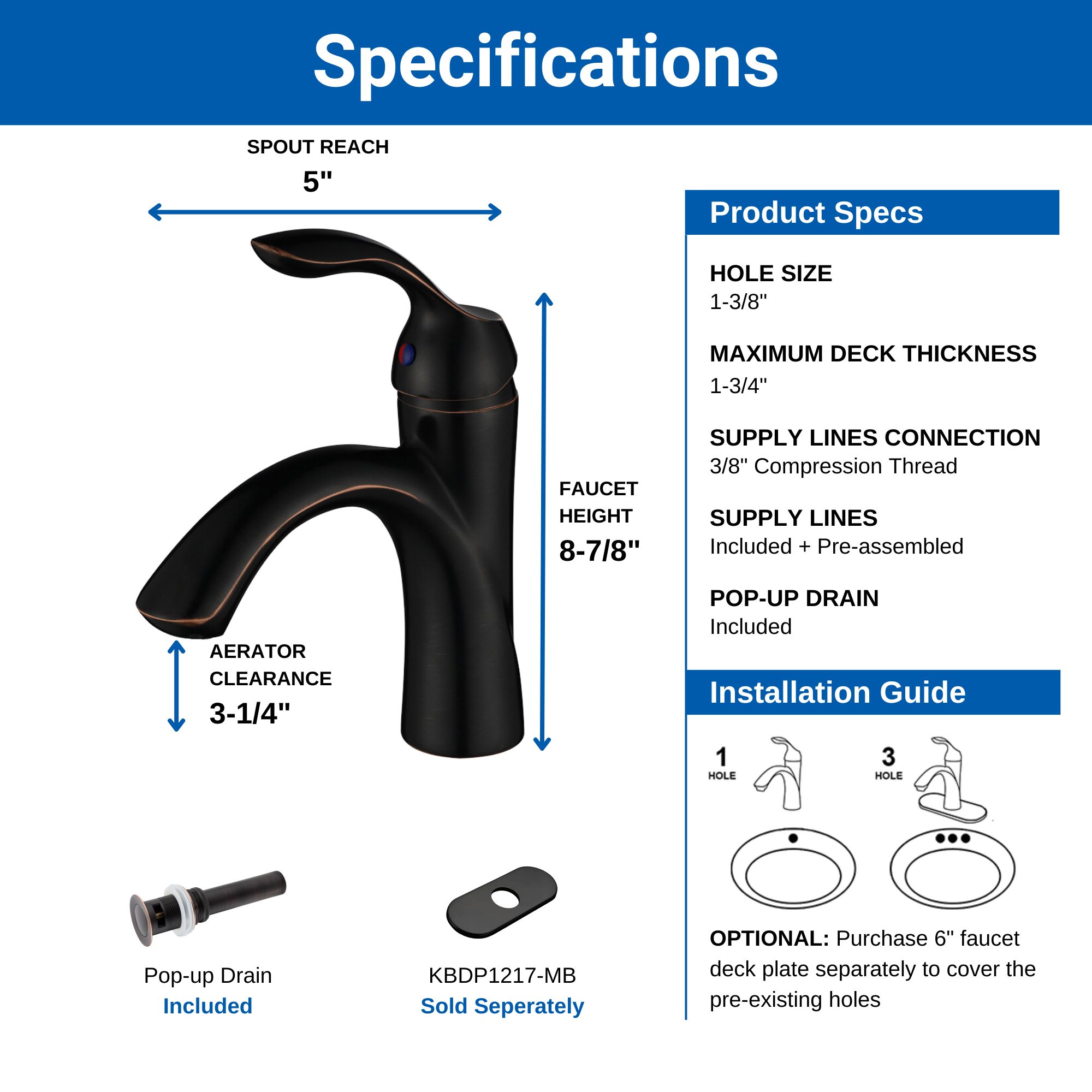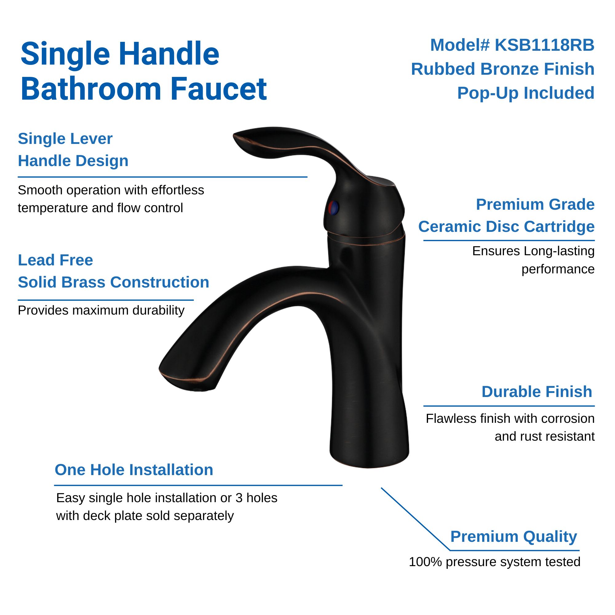 Single Handle Bathroom Sink Faucet with Pop Up Drain – KSB1118